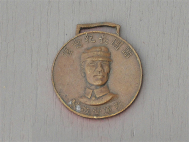 紀(jì)念章為銅制,正面中央為謝晉元半身像,頭戴軍帽,身穿軍服,表情莊嚴(yán)肅穆,目光眺望遠(yuǎn)方。上面有“謝團(tuán)長紀(jì)念像”六字,下面有“孤軍營敬制”字樣。民國三十年(1941年)謝晉元遇害,八百壯士無限悲痛,一致決議鑄造“謝團(tuán)長紀(jì)念像”,每人胸前佩戴一枚,以示悼念。